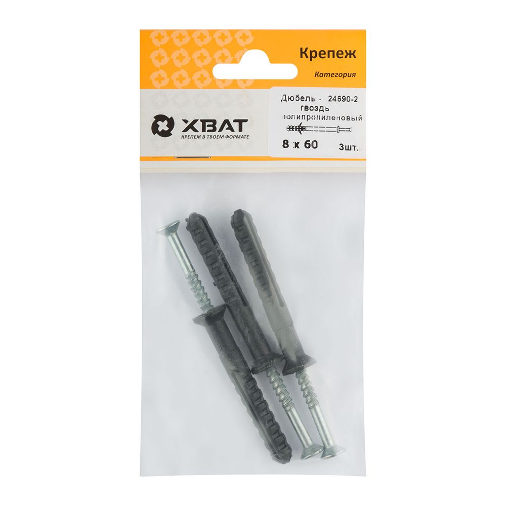 Дюбель-гвоздь полипропиленовый 8х60 (фасовка 3шт.)