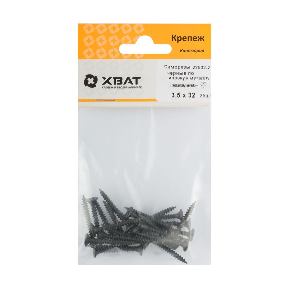 Саморезы черные по гипроку к металлу 3,5 х 32 (фасовка 25 шт)