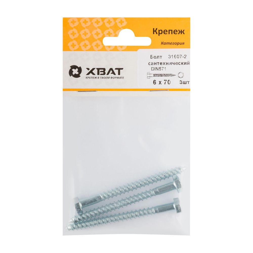 Болт сантехнический DIN 571 6/70 ( фасовка 3 шт )