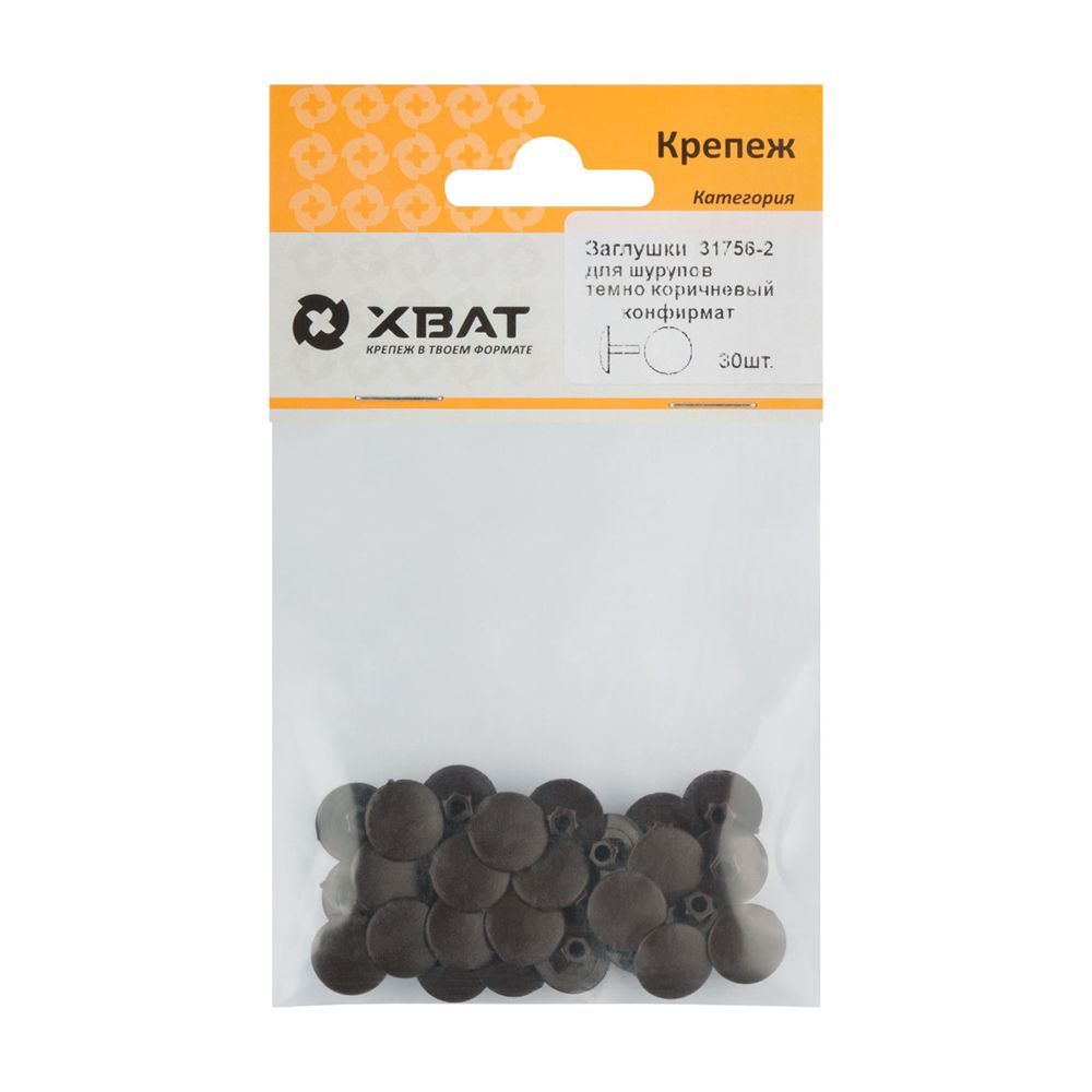 Заглушки под "конфирмат" темно коричневый (фасовка 30 шт. )