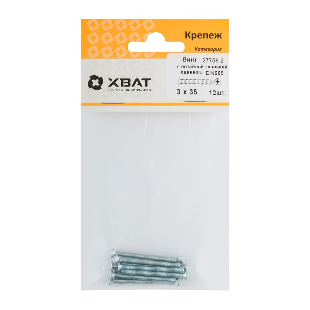 Винт с потайной головкой с полной резьбой оцинкованный DIN 965 3х35 12 шт.(фасовка)