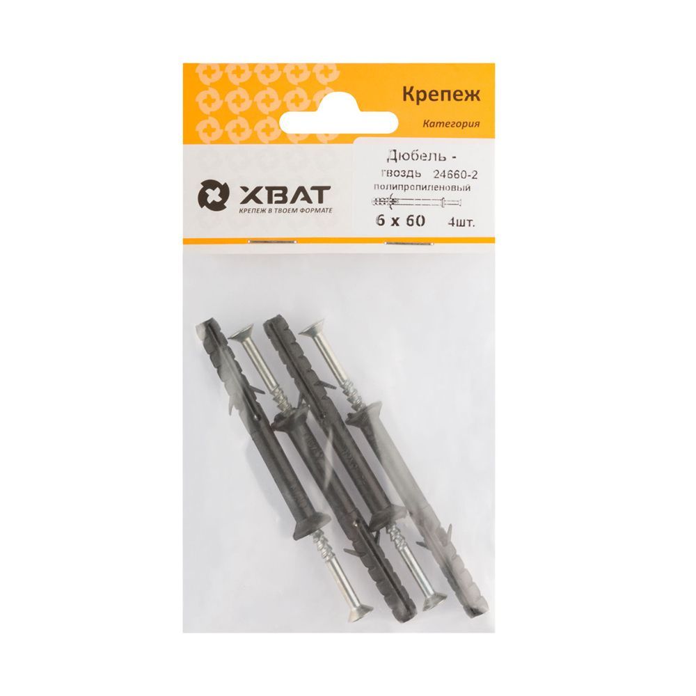 Дюбель-гвоздь полипропиленовый 6х60 (фасовка 4 шт.)
