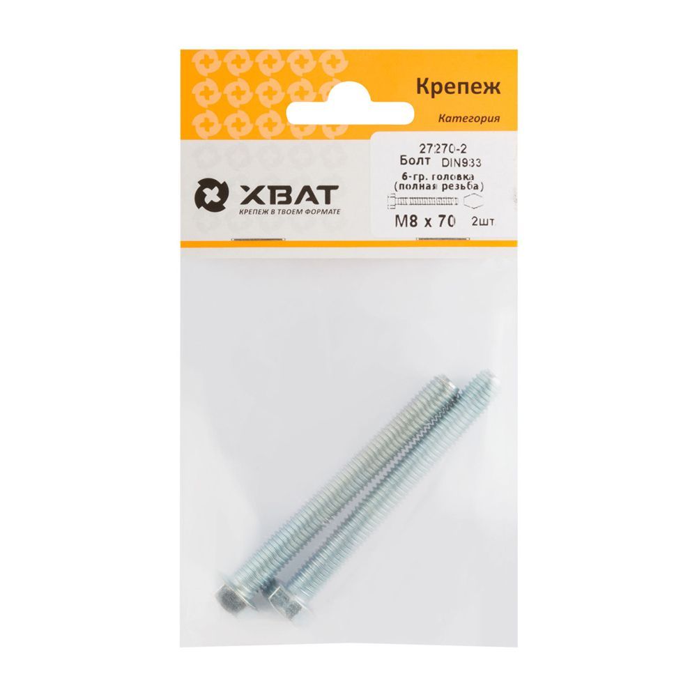 Болт 6-гранная головка (полная резьба) М8 х 70 ( фасовка 2 шт ) DIN933