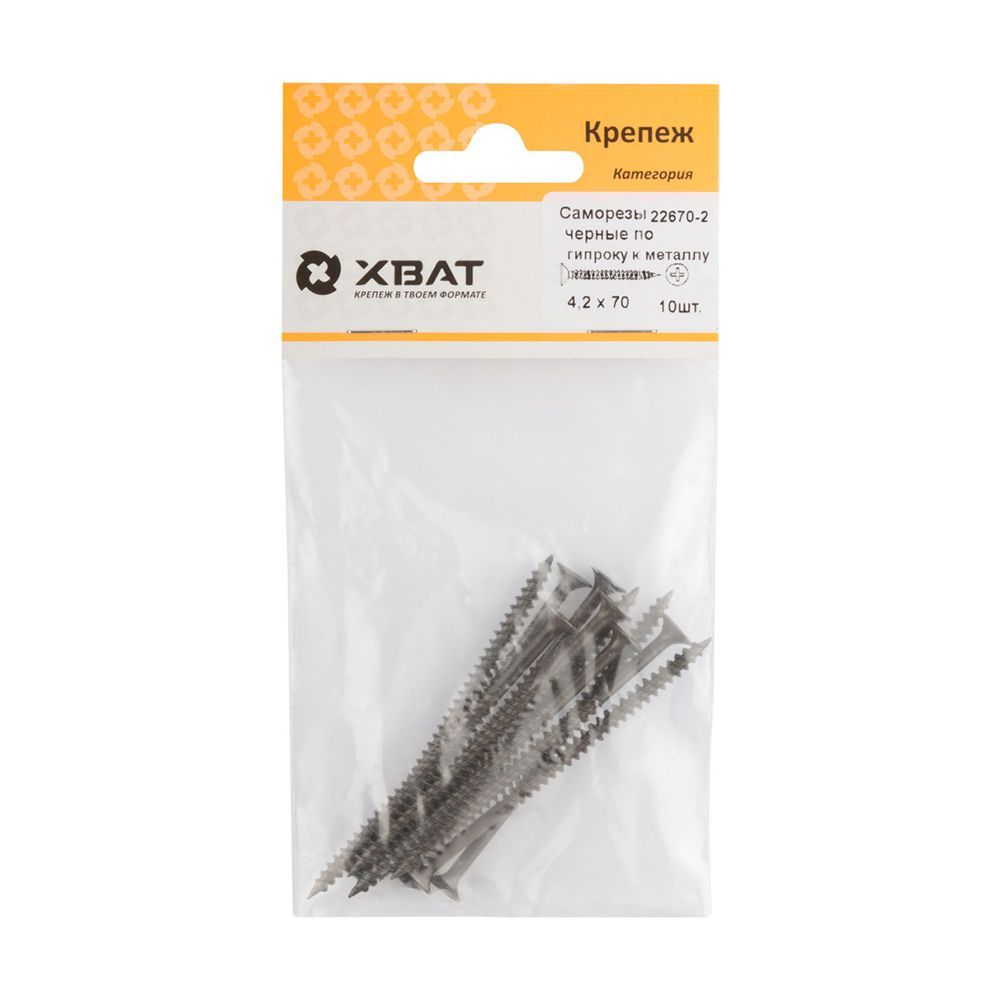 Саморезы черные по гипроку к металлу 4,2 х 70 (фасовка 10 шт)