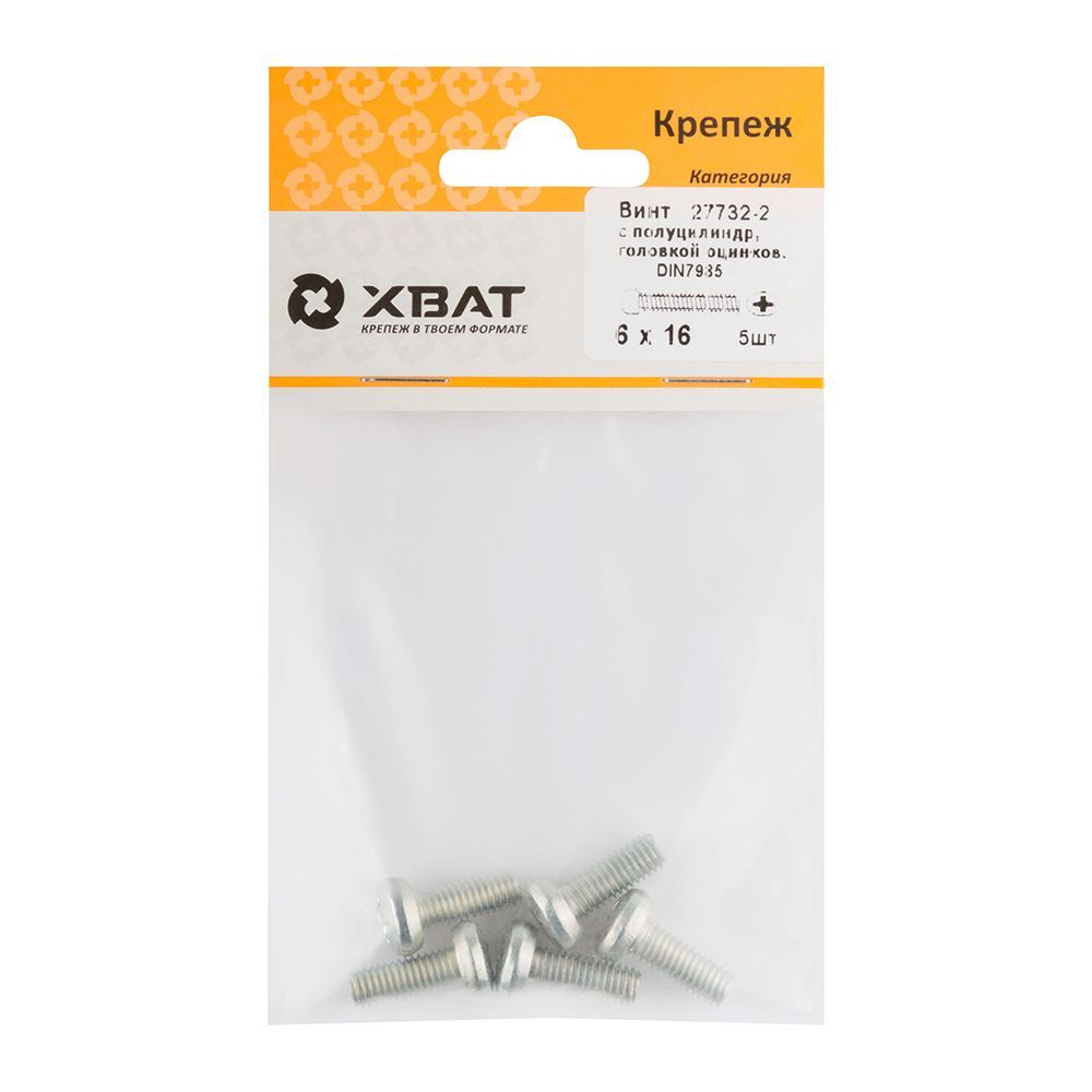 Винт с полуцилиндрич. головкой с полной резьбой оцинков. DIN 7985 6х16 5 шт.(фасовка)
