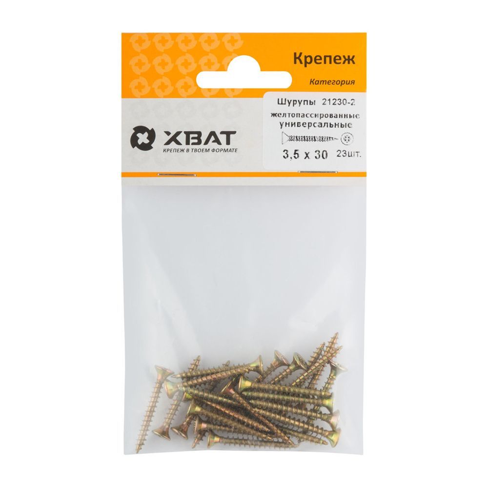 Шурупы желтопассированные, универсальные 3.5 х 30 ( фасовка 23 шт.)