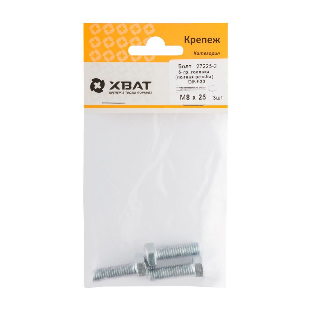 Болт 6-гранная головка (полная резьба) М8 х 25 ( фасовка 3 шт ) DIN933