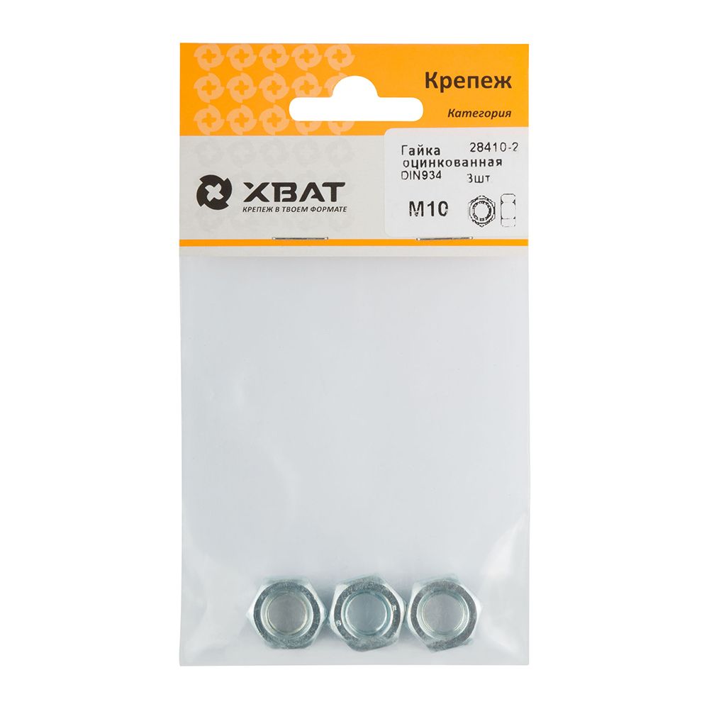 Гайка оцинкованная М10 ( фасовка 3 шт ) DIN 934