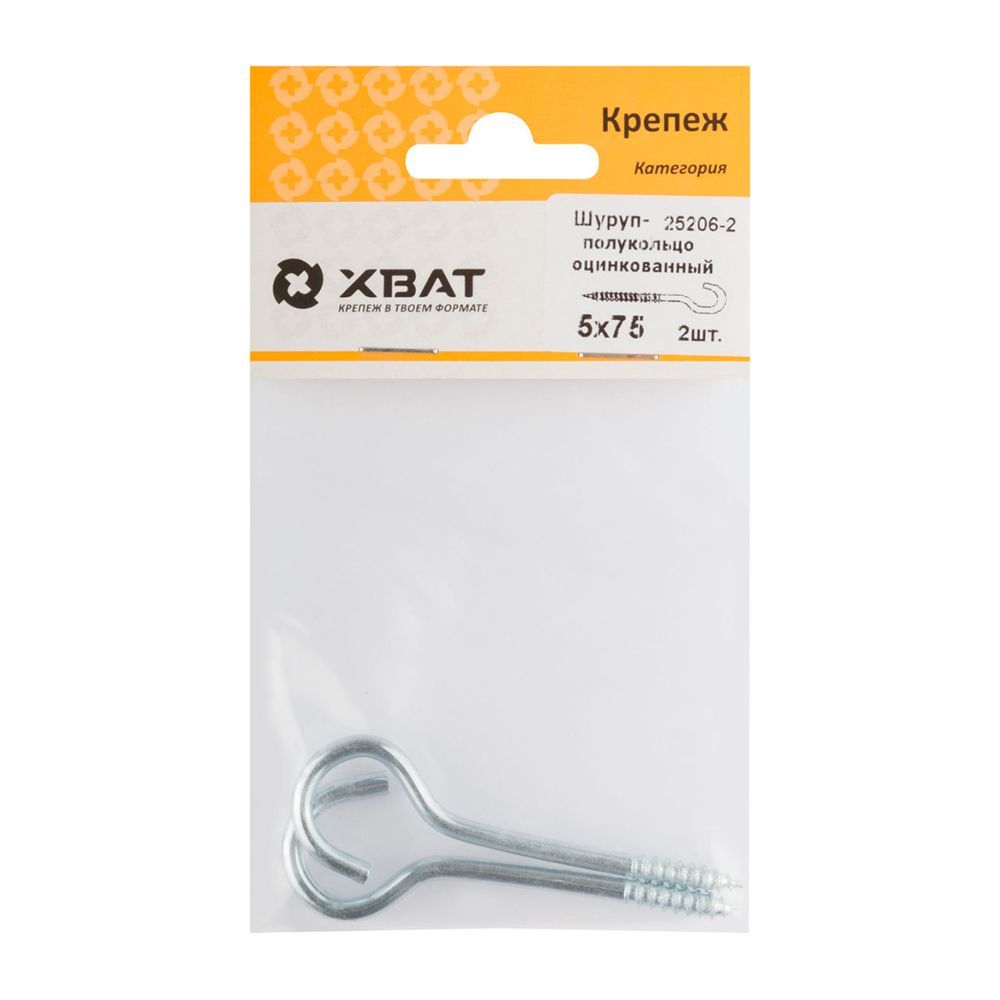 Шуруп-полукольцо оцинкованный, 5 х 75/80 (фасовка 2 шт)
