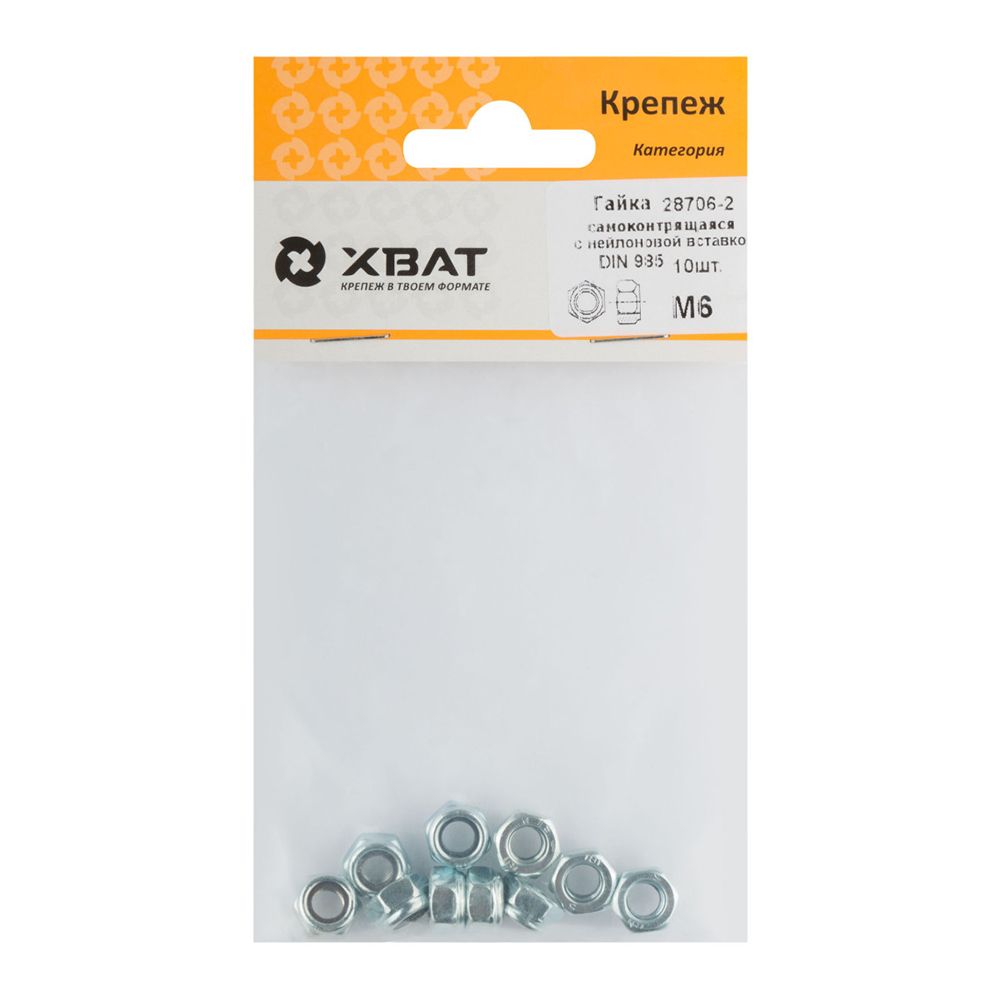 Гайка самоконтрящаяся с нейлоновой вставкой М6 ( фасовка 10 шт ) DIN 985