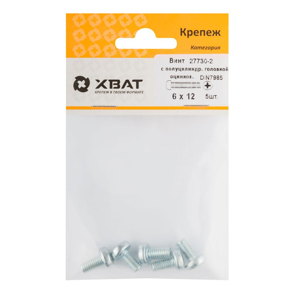Винт с полуцилиндрич. головкой с полной резьбой оцинков. DIN 7985 6х12 5 шт.(фасовка)