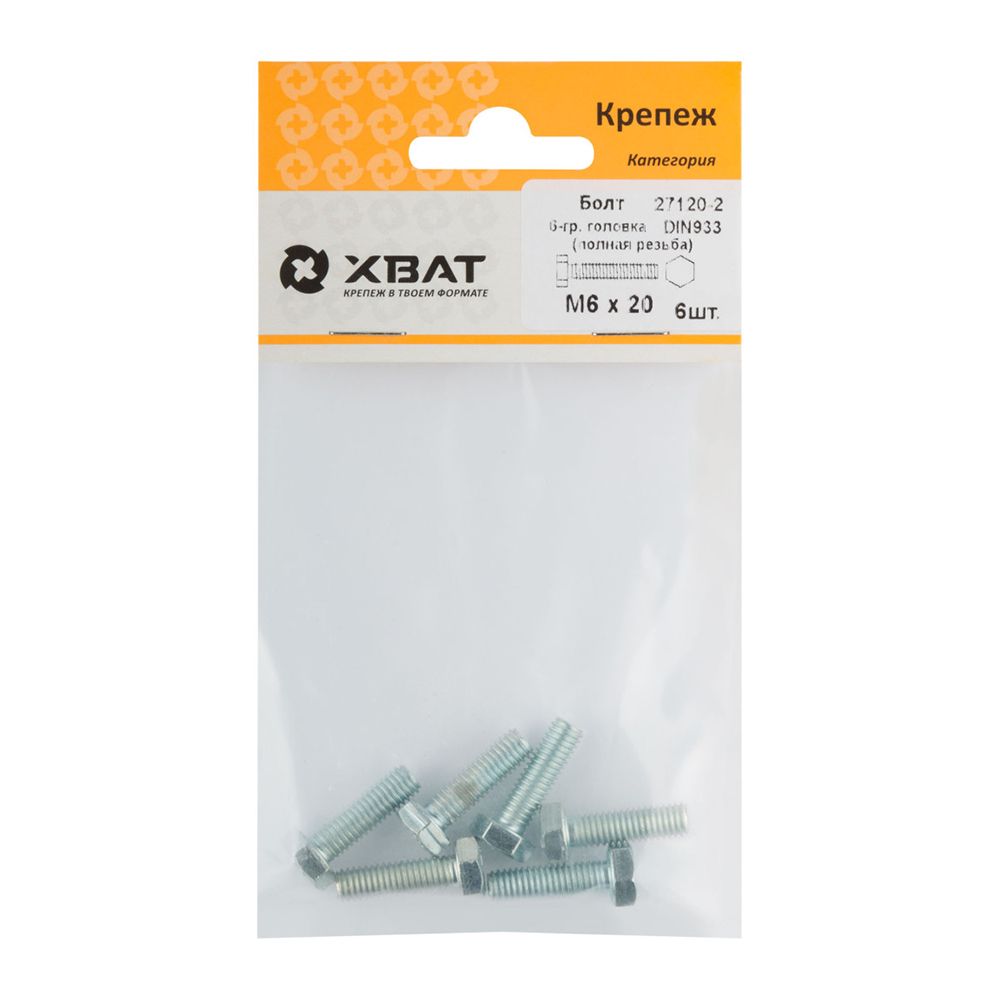 Болт 6-гранная головка (полная резьба) М6 х 20 (фасовка 6 шт) DIN933