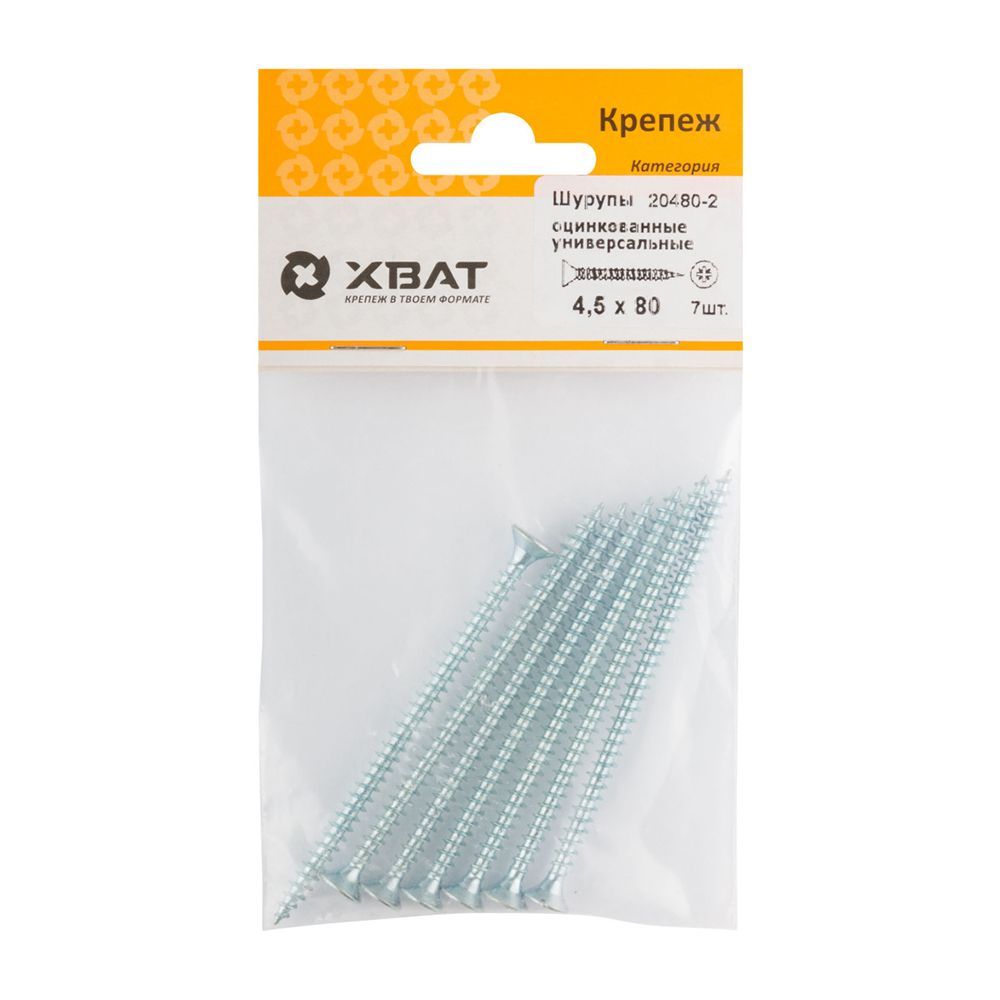 Шурупы оцинкованные, универсальные 4.5 х 80 ( фасовка 7 шт.)