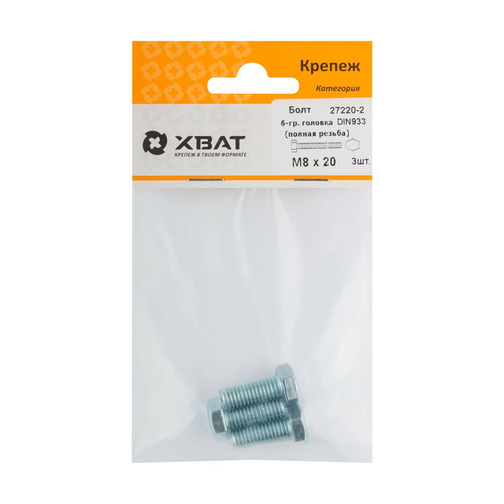 Болт 6-гранная головка (полная резьба) М8 х 20 ( фасовка 3 шт ) DIN933