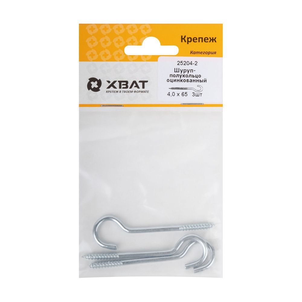 Шуруп-полукольцо оцинкованный 4,0 х 65 (фасовка 3 шт)