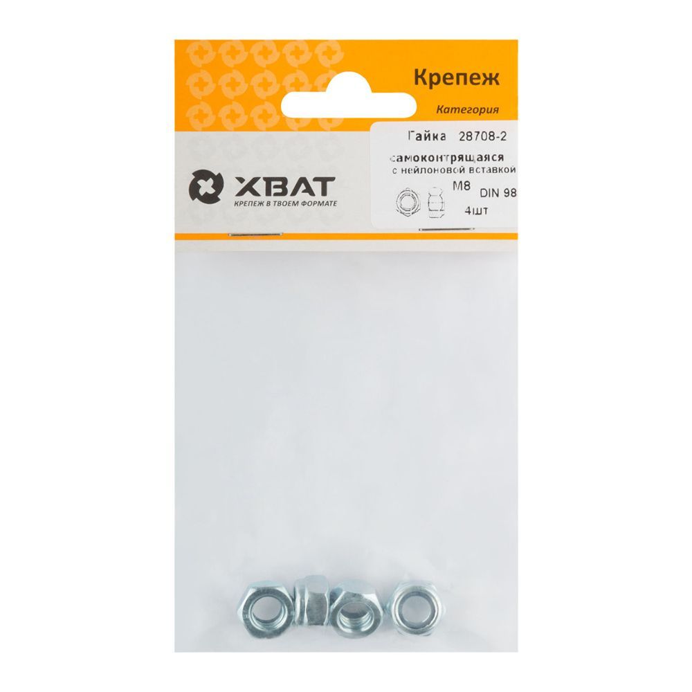 Гайка самоконтрящаяся с нейлоновой вставкой М8 ( фасовка 4 шт ) DIN 985