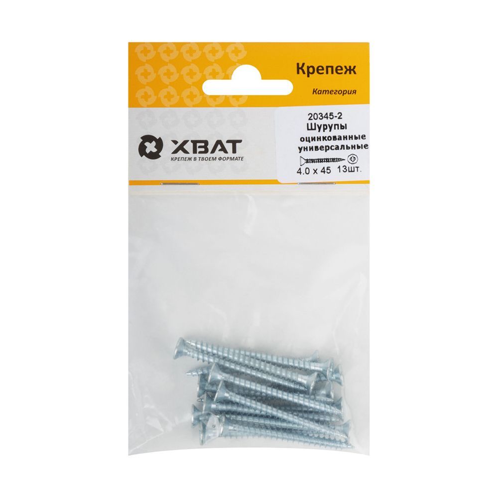 Шурупы оцинкованные, универсальные 4 х 45 (фасовка 13 шт)