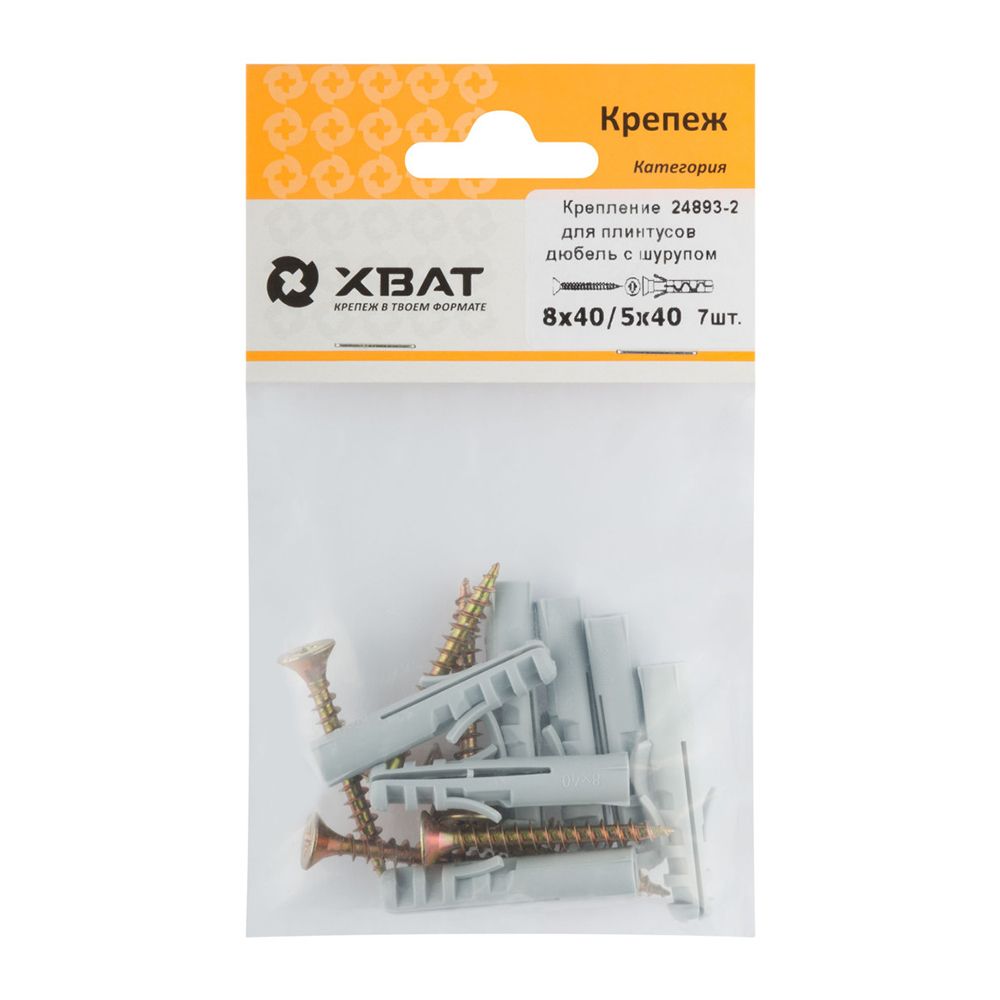 Крепление для плинтусов.Комплект: дюбель с шурупом 8х40/5х40 (фасовка 7 шт)