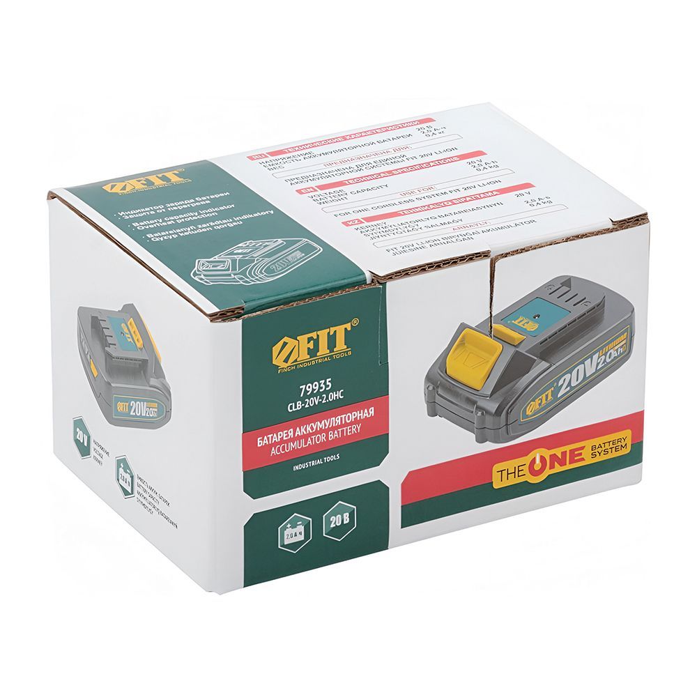 Лёгкий (0.4 кг) аккумулятор 20 В, 2.0 Ач для инструментов FIT THE ONE. Удобный индикатор заряда батареи и защита от перегрева для долгой и безопасной работы. Упаковка - коробка.