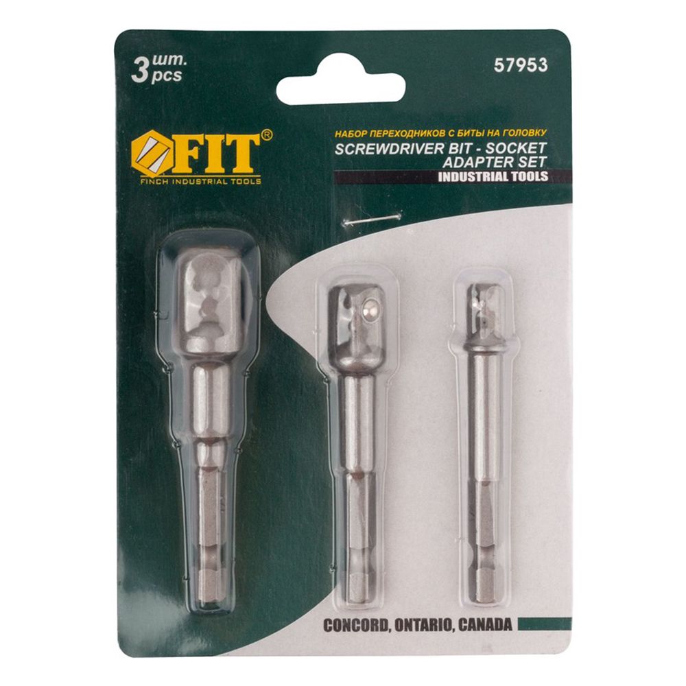 Набор адаптеров из легированной стали для использования головок с хвостовиками под биты. Включает в себя 3 адаптера размеров 1/4", 3/8" и 1/2". Упаковка - блистер.