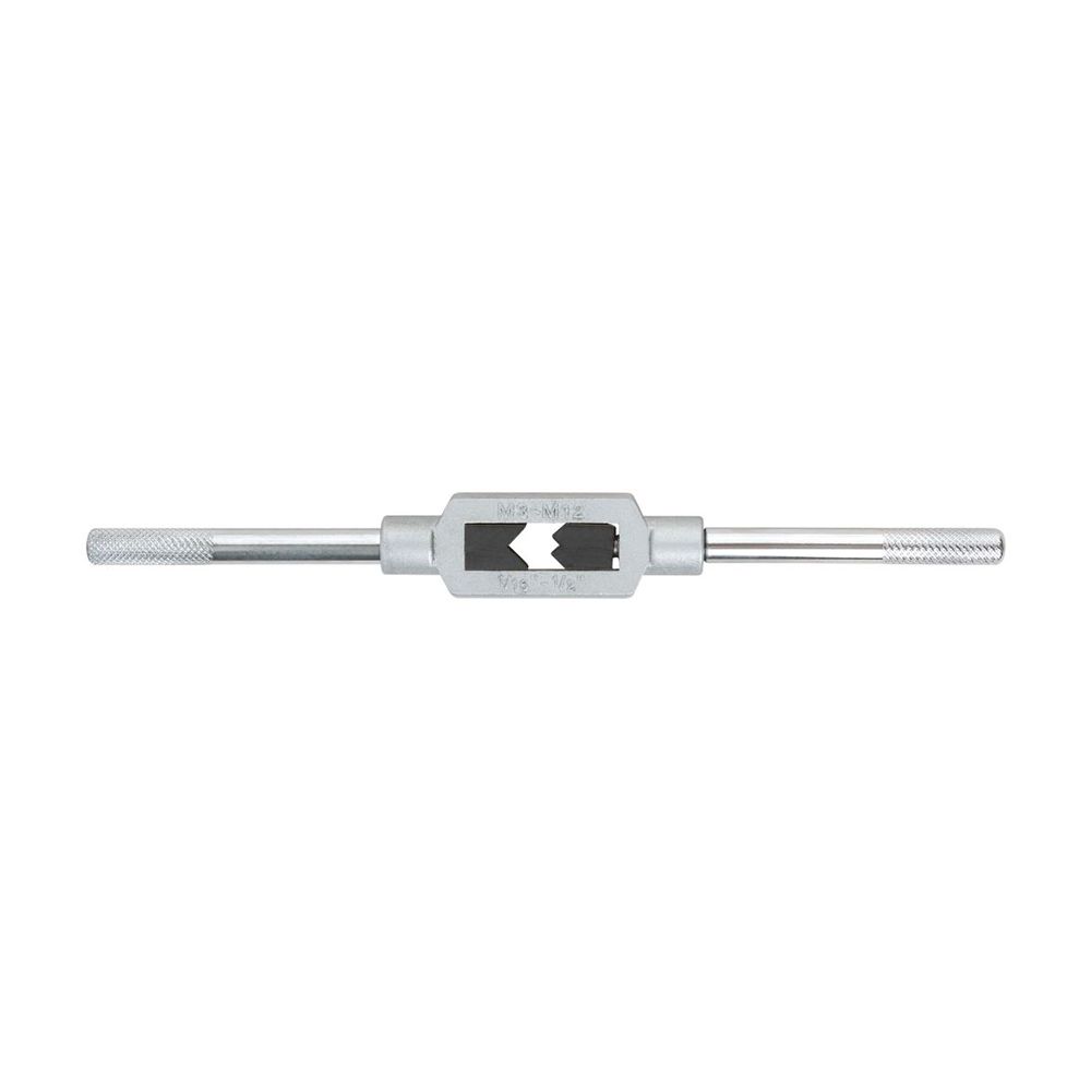 Метчикодержатель универсальный КУРС 70747 для метчиков М3-М12. Надежная фиксация метчика при ручном нарезании резьбы. Изготовлен из инструментальной стали и цинкового сплава. Поставляется в картонной коробке.