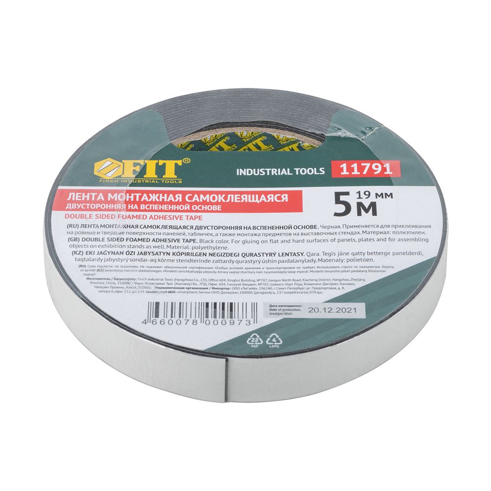 Лента клеящая, 2-х сторонняя монтажная,на вспененной основе, черная, 19 мм х 5 м