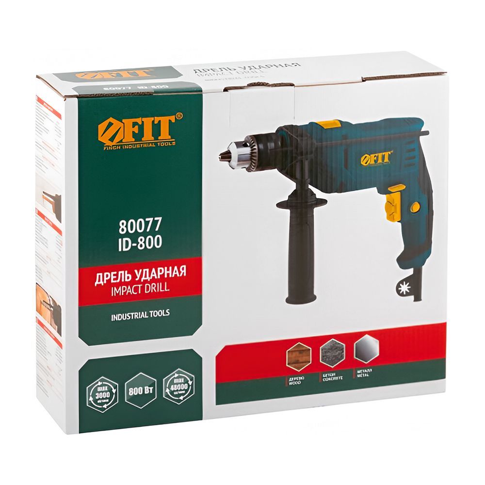 Дрель ударная 800 Вт; 0-3000 об/мин; КлП 13 мм; 1,85 кг; рез. накл.; коробка
