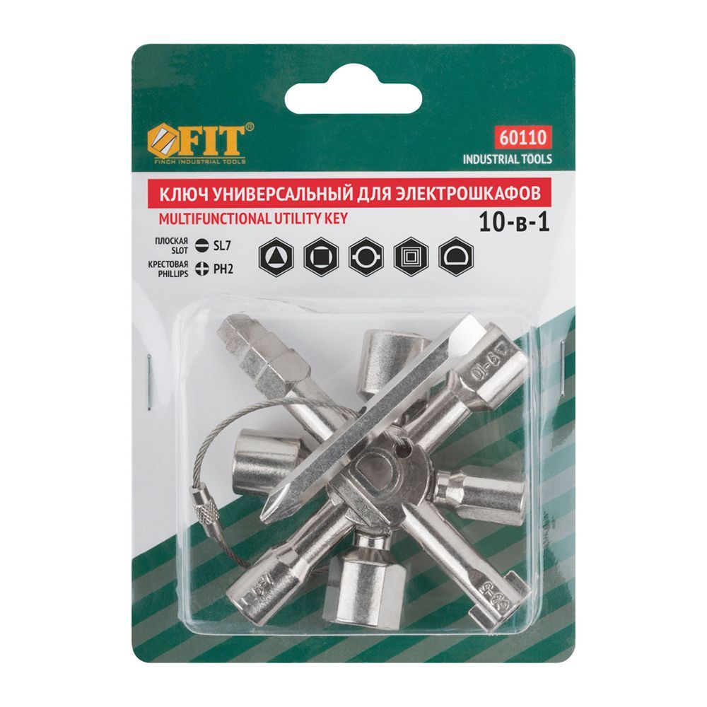 Ключ универсальный для электрошкафов 10-в-1, двусторонняя CrV бита РН2/SL7
