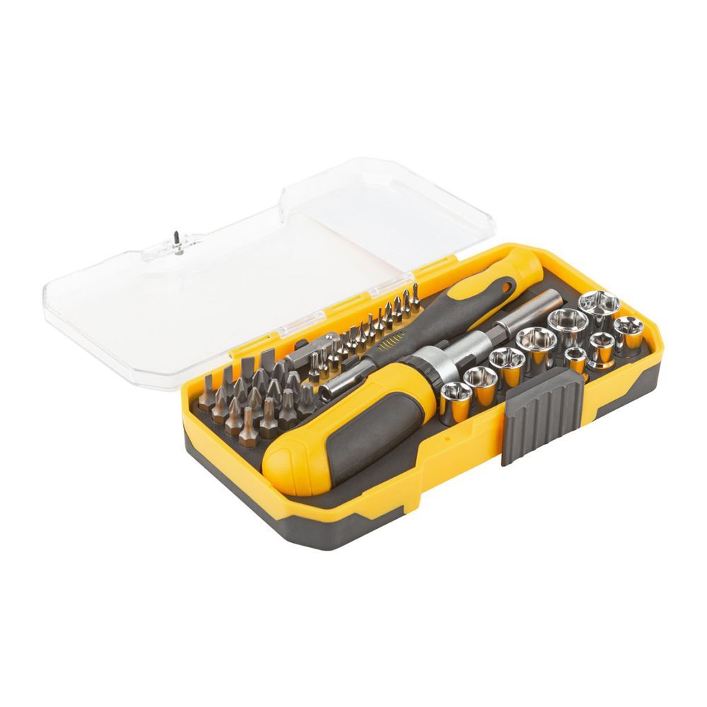 Отвертки реверсивная и для точных работ, набор 41 шт., пластиковый прорезиненный кейс