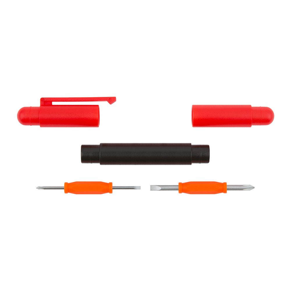 Эта мини-отвертка FIT IT идеально подходит для работы с крошечными винтиками, такими как PH0, SL3, PH00 и SL1,8. Благодаря форме, напоминающей авторучку, ее удобно хранить и использовать. Корпус сделан из прочного пластика, а сами стержни – из надежной хром-ванадиевой стали. В комплекте идут два двусторонних стержня, что делает отвертку универсальной для разных задач.