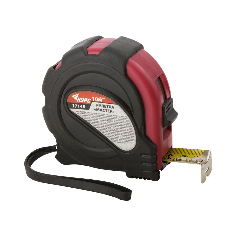 Рулетка прорезиненный корпус "Мастер" 10 м x 25 мм