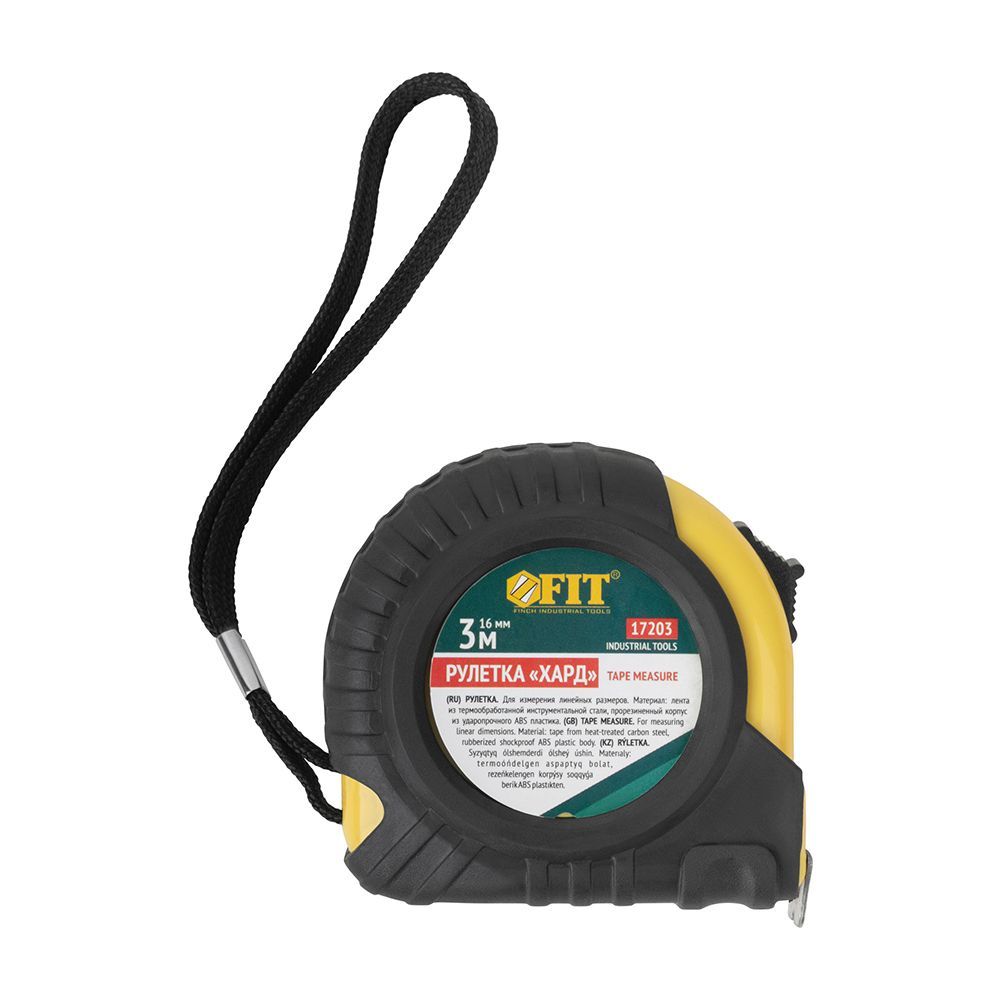 Эта рулетка FIT из серии "Хард" – настоящий помощник для точных измерений. Она создана для того, чтобы вы могли легко и быстро измерять длину. Корпус у нее крепкий, сделан из ABS-пластика, который не боится ударов и падений. А чтобы рулетка не пострадала, если вдруг упадет, на корпусе есть специальные резиновые накладки. Сама лента тоже не подведет – она покрыта прочным полимером, так что цифры и деления не сотрутся со временем. Удобно, что ее можно прицепить к ремню с помощью металлической клипсы, а тканевый ремешок позволит носить ее на руке или просто повесить куда-нибудь.