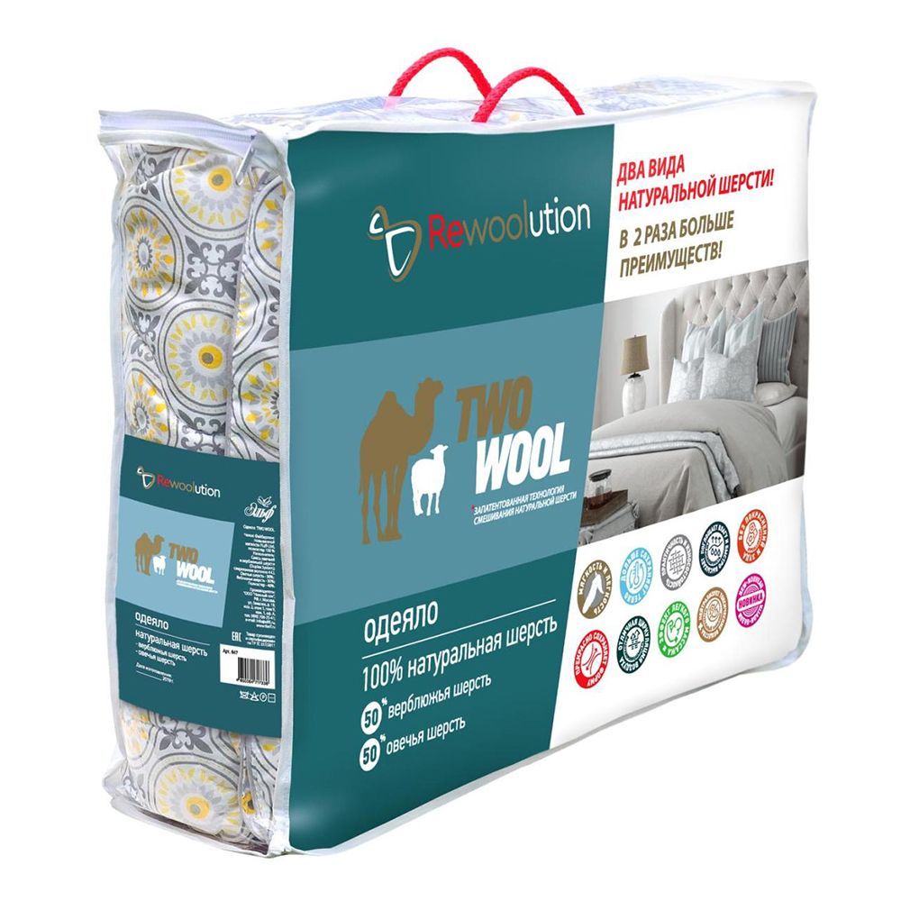 Одеяло "Two wool" всесезонное 2 сп., 172х205 см, вес наполнителя 220 г/кв.м. (1) (6)