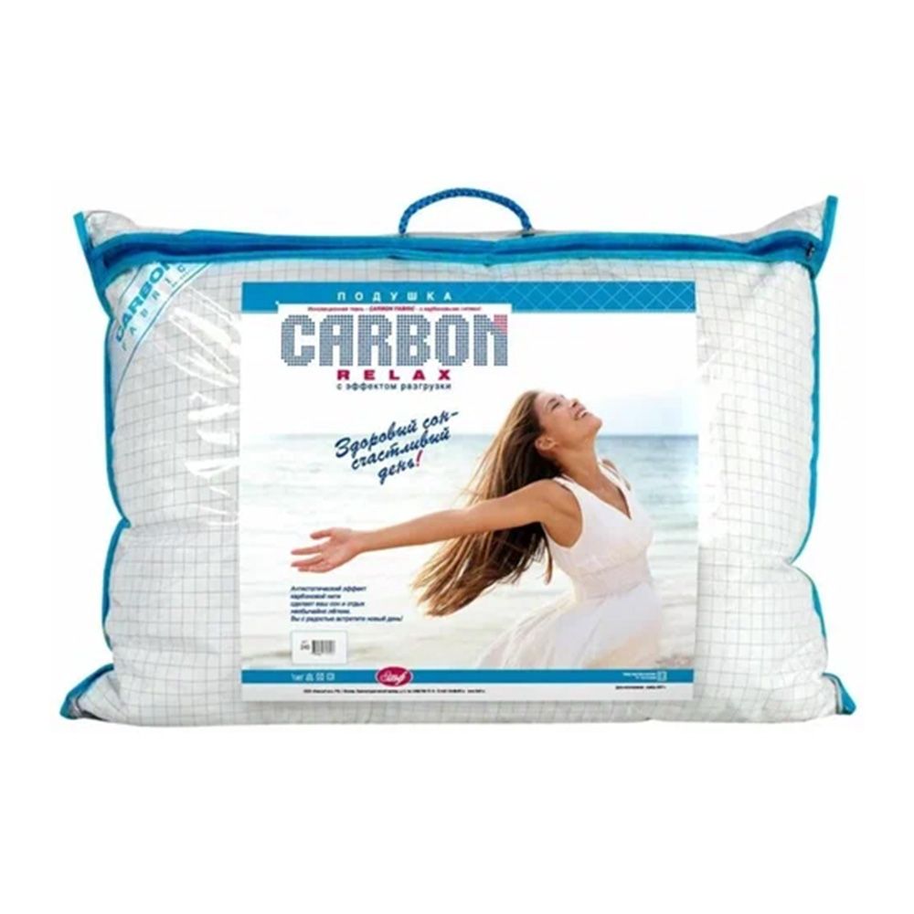 Подушка CARBON-RELAX с наполнителем "синтетический пух" в чехле из микрофибры с карбоновыми нитями,