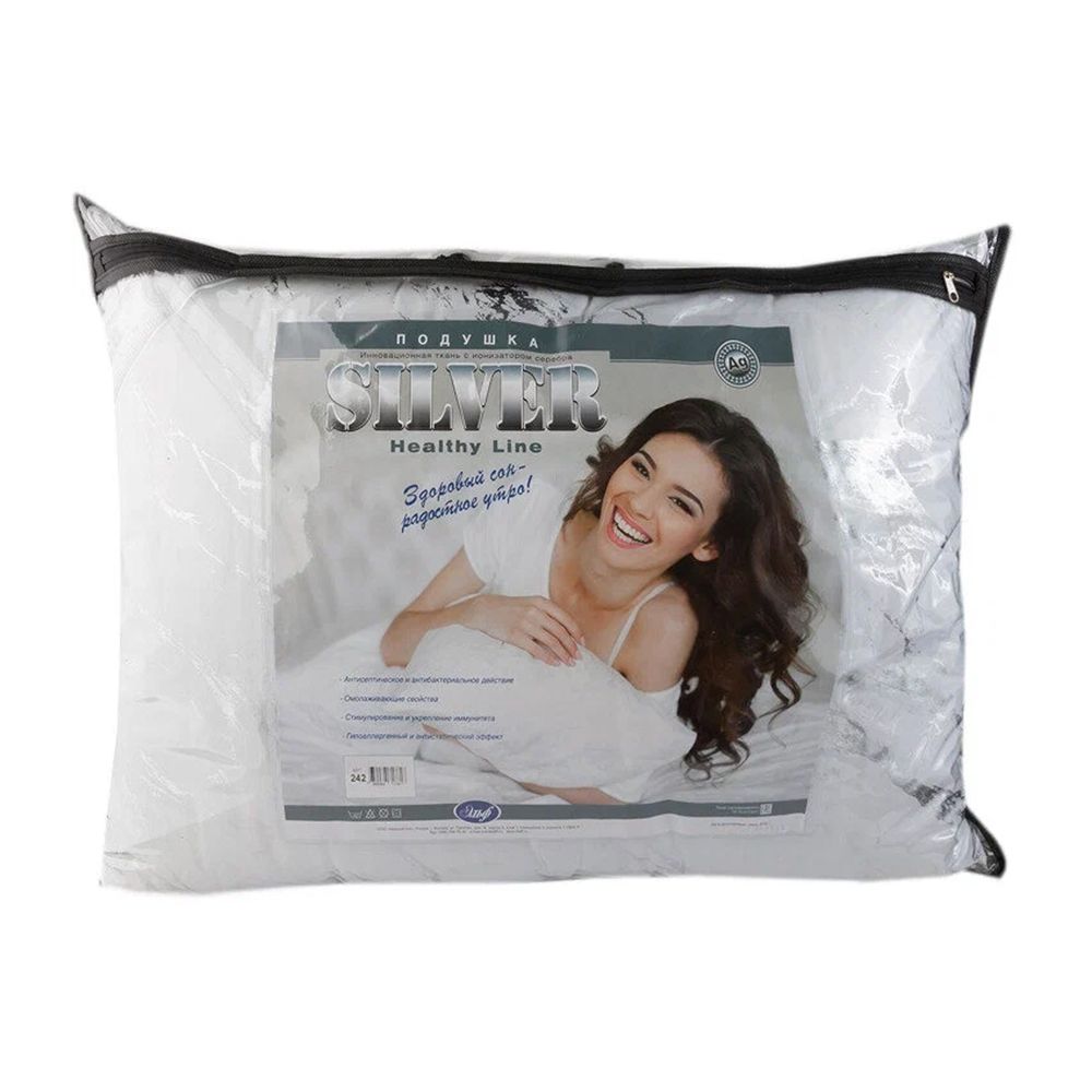 Подушка SILVER с наполнителем "синтетический пух" в чехле из микрофибры с серебр напылением, 50*70с