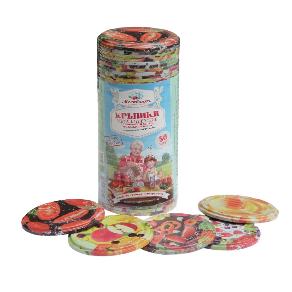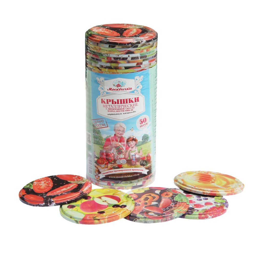 Крышка СКО ЭЖК-20 с литографией оптом от бренда "Москвичка исконно хороша". Крышка металлическая с уплотнительным кольцом для обкатки стеклянной банки с венчиком горловины 82 мм. Используется в промышленных и домашних условиях. Покрыта специальным пищевым лаком. Для укупорки стеклотары нужно использовать закаточную машинку.