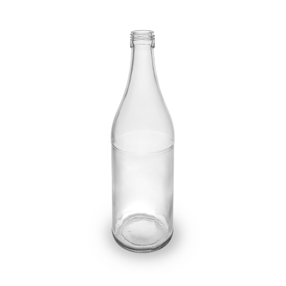 Бутылка стеклянная из прозрачного стекла. Предназначена для зранения, розлива им транспортировки, в первую очередь алкогольных напитков. Выполнена из качесвенного стекла.