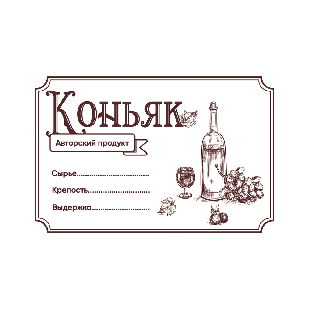 Тематический комплект этикеток на бутылку "Коньяк". Материал самоклеющаяся бумага, размер 90х60 мм. Комплект 30 шт.