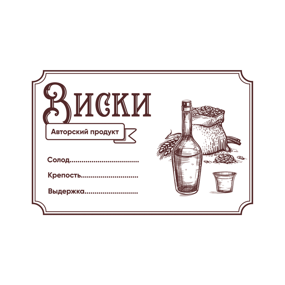 Тематический комплект этикеток на бутылку "Виски". Материал самоклеющаяся бумага, размер 90х60 мм. Комплект 30 шт.