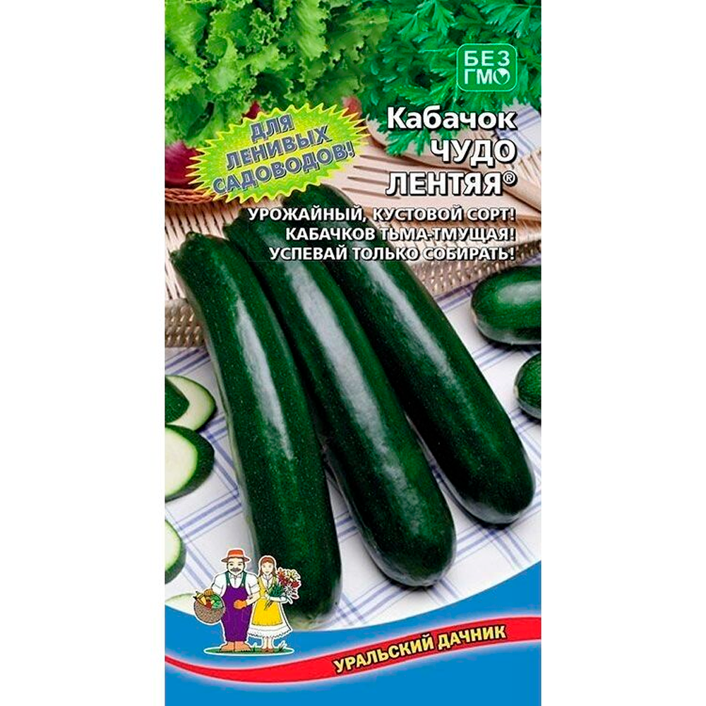 Кабачок Чудо лентяя - раннеспелый сорт, период от всходов до первого сбора 43-45 дней. Надежный сорт для северных региоов, Растение кустовое, компактное, одновременно формирует 4-5 плодов. Плоды массой 0,3-0,8 кг, с елой мякотью отличного вкуса.