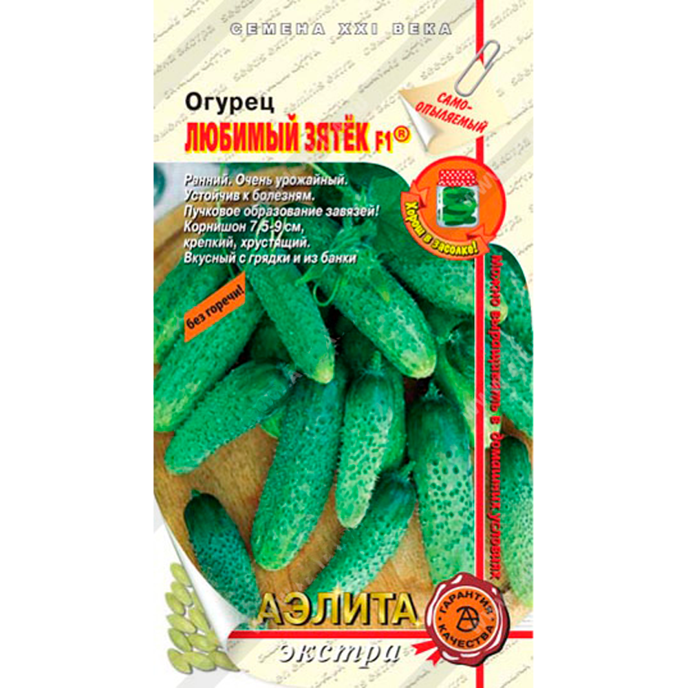Новый очень ранний самоопыляемый партенокарпический гибрид. Для открытого грунта, пленочных укрытий и стеклянных теплиц. Отличается очень высокой урожайностью, длительным периодом плодоношения и товарностью плодов. Очень устойчив к основным болезням огурца: вирусу огуречной мозаики, настоящей мучнистой росе, оливковой пятнистости, высоко толерантен к ложной мучнистой росе. Плети растения средних размеров. Зеленцы крупнобугорчатые, насыщенно-зеленые, овально- цилиндрической формы. Масса зеленца – 80-95г, длина 7,5-9 см, соотношение длины к диаметру – 3,3:1. Вкусовые качества превосходные, горечи не содержит. Рекомендован для употребления в свежем виде, консервирования и засолки. Компания «АЭЛИТА» является эксклюзивным продавцом семян гибрида огурца «ЛЮБИМЫЙ ЗЯТЁК F1»® на рынке семян.