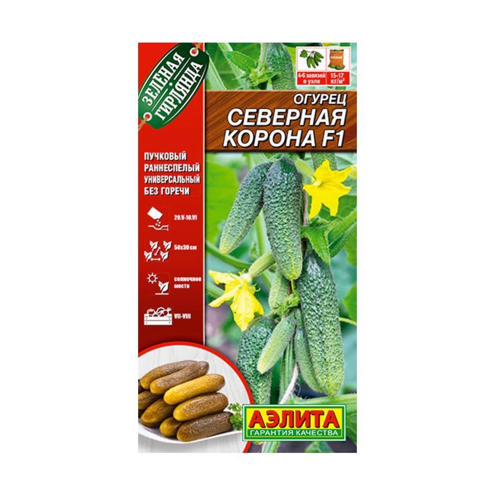 Огурец "Северная корона F1" – отличный выбор для тех, кто хочет быстро получить вкусный урожай! Этот ранний сорт, не требующий опыления (партенокарпический), идеально подходит для выращивания как в теплице, так и на грядке. Уже через 40-45 дней вы сможете собирать первые хрустящие, сочные огурчики, которые никогда не горчат. В каждом узле формируется целая гроздь – от 4 до 6 плодов весом 100-120 грамм. Используйте их как хотите – для салатов, засолки или просто похрустеть! Урожайность под пленкой впечатляет – до 17 кг с квадратного метра.