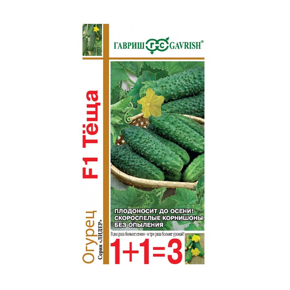 Огурец F1 Теща авторской селекции «Гавриш» стал очень популярным на отечественных огородах. Это объясняется высокими вкусовыми качествами, отличным товарным видом плодов, большая устойчивость к болезням, холоду и перепадам температуры. Зеленцы длиной 11-13 см, массой 100-120 г, бугорчатые, бурошипые, без горечи. В пазухе листа образуется до 3-4-х завязей. Ароматные плоды громко хрустят в летних салатах, а консервированные дары солнечного лета порадуют плотной мякотью и безупречной формой. Гибрид скороспелый (45-48 дней от всходов до плодоношения), партенокарпический, плавно отдает урожай весь сезон. Растение средневетвистое. Выращивают в открытом грунте и пленочных теплицах. Посев на рассаду — в конце апреля. Высадка в грунт — в конце мая-начале июня в фазе 3-4-х настоящих листьев. Посев непосредственно в грунт — в середине-конце мая. Схема посадки: 50х50 см. Семена после уборки сохраняют всхожесть в течение 7 лет при оптимальных условиях хранения. Рекомендуется увеличить норму высева по истечение срока годно