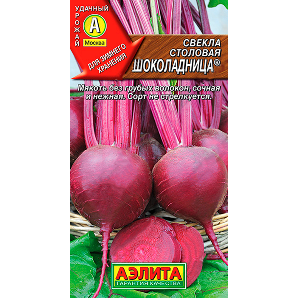 Высокоурожайный, среднеспелый, холодостойкий сорт. От всходов до технической спелости 100-110 дней. Корнеплоды выравненные, массой 110-220 г, гладкие, с тонкими и короткими осевыми корешками. Мякоть темно-красная, сочная, нежная, без грубых волокон и кольцеватости. Подходит для кулинарии, консервирования и замораживания. Прекрасно хранится в зимний период. Сорт устойчив к цветушности. Урожайность – 6-7 кг/ м2.