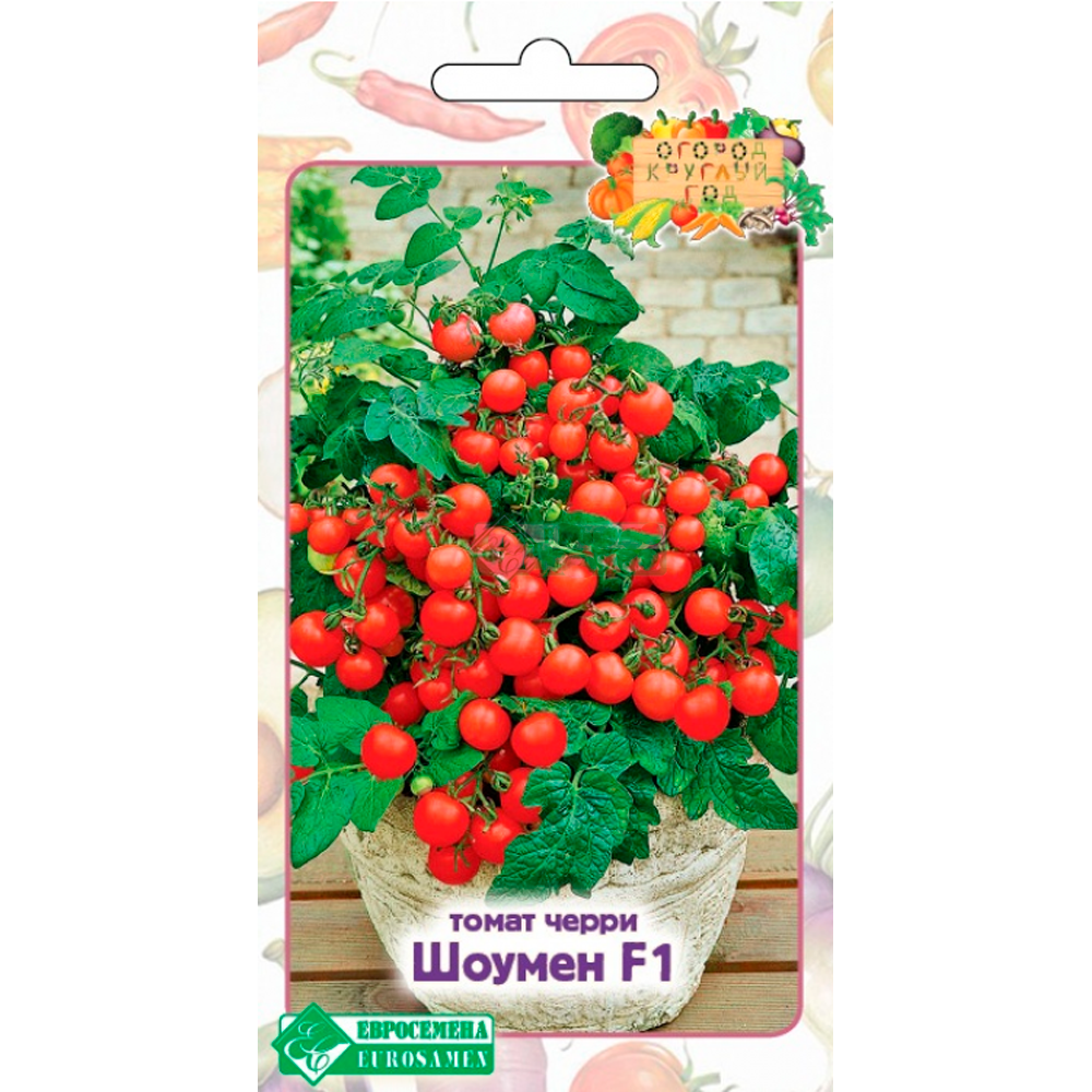Томат «Шоумен» - раннеспелый детерминантный гибрид черри-томата, в кистях которого формируется до 8-10 высокотоварных плодов красного цвета, массой около 20 гр.