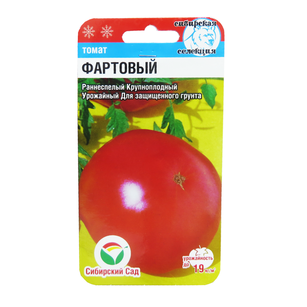 Очень урожайный раннеспелый, крупноплодный сорт сибирских селекционеров. От всходов до начала созревания плодов -102 дня. Сорт выращивается в защищенном грунте , прекрасно приспособлен для выращивания в пленочных теплицах в условиях Сибири. Растение высотой 1,7-2,0 м,завязывание первой кисти над 8 листом .Плоды замечательно выровненные округлые, глянцево-красные, сахаристые и вкусные,не растрескиваются. Масса плодов 180-250 грамм. Урожайность высокая – до 19 кг.с 1 кв. м. Скороспелость, урожайность и отличные вкусовые качества плодов делают этот сорт привлекательным для садоводов , занимающихся реализацией томатов собственного производства.
