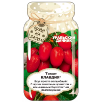 Сумасшедшая раннеспелость и холодостойкость основные достоинства Клавдии. Растение компактное, высотой 40-45 см с удлинённо-овальными, гладкими плодами, цвета спелого граната, массой по 50-60 г каждый. Вкус просто волшебный с насыщенным бархатистым послевкусием и ярким томатным ароматом. Клавдия идеально подойдет для цельноплодного консервирования, засолки. Она очарует Вас своим урожаем и будет вам доброй, огородной подружкой. Устойчивость к болезням (IR): Ph(HR),ВТМ, ВГ.