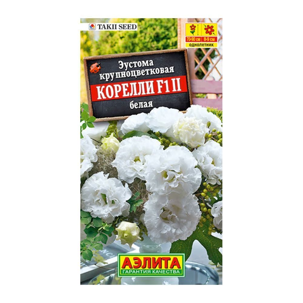 Эустома Корелли F1 белая – это высококачественный гибрид от японской компании Takii Seed. Отличительные черты этого сорта – крупные (8-9 см) цветы с изысканной формой и мощные, хорошо ветвящиеся растения высотой 70-90 см. Они идеально подходят для флористики, так как долго сохраняют свежесть после срезки. Семена в гранулах: для посева разложите их на поверхности увлажненной почвы, не заглубляя, и опрыскайте. Оболочка гранул растворится при контакте с водой. Для прорастания необходимы тепличные условия (накройте стеклом) и продолжительное освещение (минимум 16 часов в сутки).