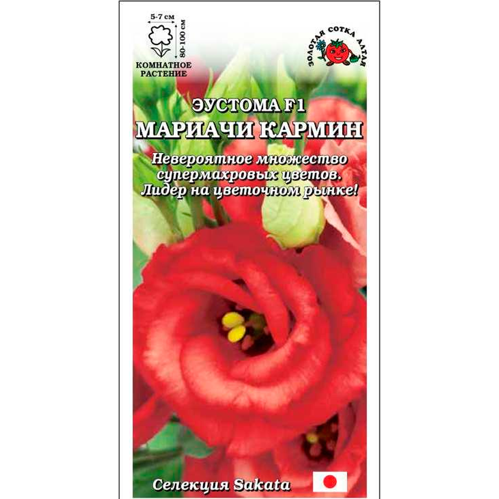 Серия Мариачи отличается пышным цветением, превосходной формой цветов и стойкой окраской, прекрасно подходит для однолетнего выращивания в саду и круглогодичного в оранжереях. Цветоносы крепкие, не гнутся и не ломаются, великолепно ветвятся, несут до 25 бутонов. Цветы крупные, супер махровые, манящего карминно-красного цвета. Эустома – одно из наиболее популярных и востребованных срезочных растений на цветочном рынке!