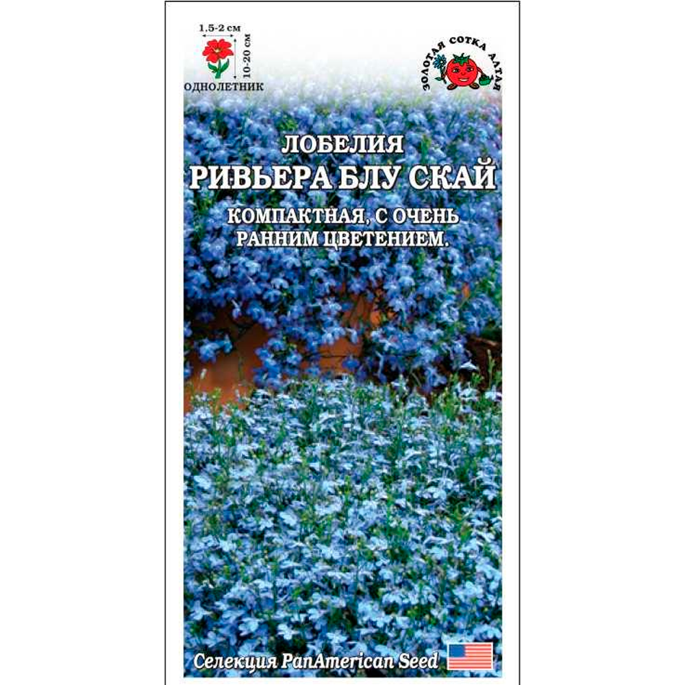 Лобелии серии «Ривьера» отличаются очень ранним цветением, эффектным видом и насыщенностью окрасок. Кустик компактный, шаровидный, сплошь покрыт мелкими очаровательными цветочками небесно-голубого цвета. Великолепно подходит для обсадки цветников, создания бордюров, клумб и рабаток, выращивания в подвесных кашпо, вазонах и балконных ящиках. Обильно цветет в течение всего сезона.